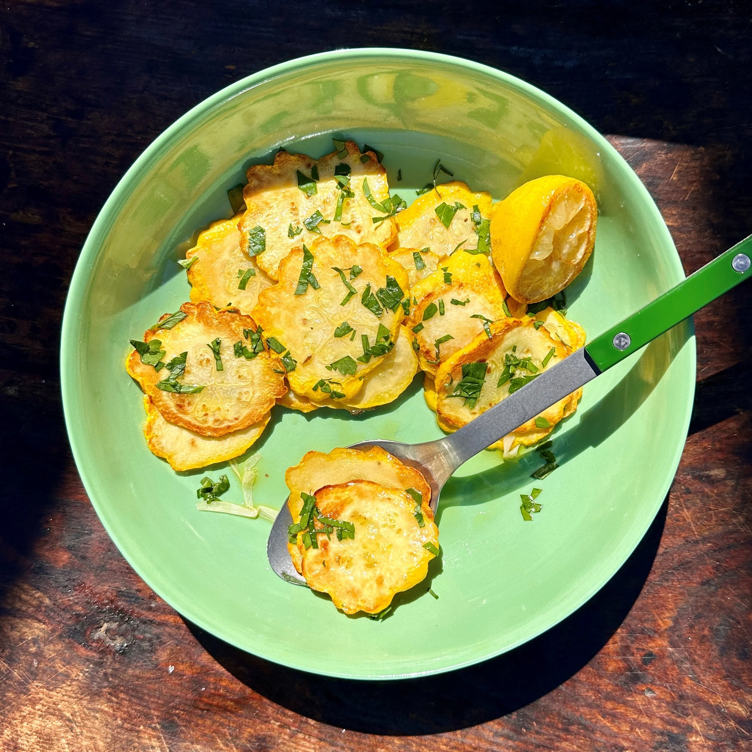 YELLOW SQUASH SAUTEED WITH GARLIC, LEMON AND PARSLEY