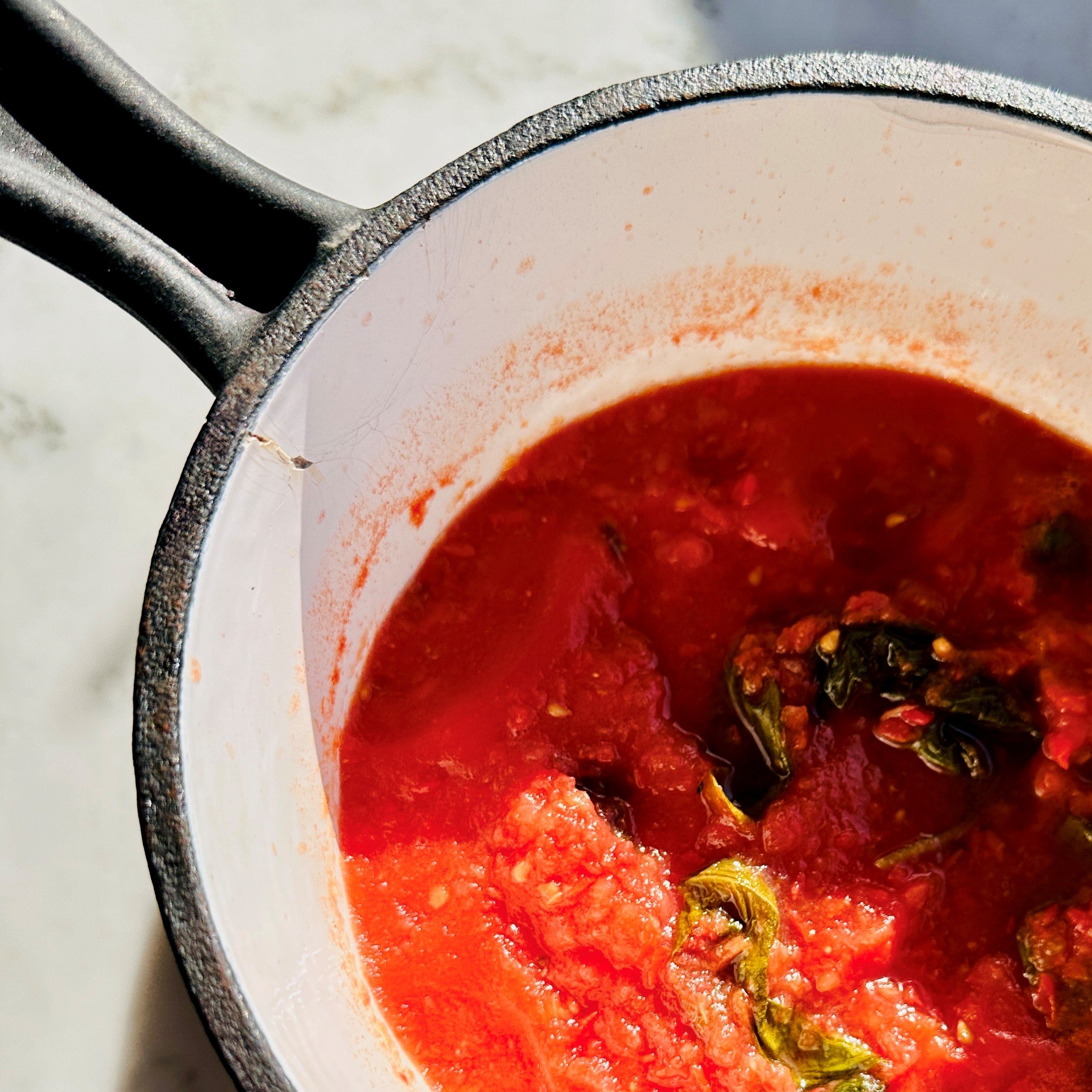 For a pasta sauce, place in a saucepan with about 6 large basil leaves, ½ teaspoon of salt and 2 tablespoon olive oil. Heat over a medium heat until simmering and cook for 5-8 minutes. Prepare while the pasta is cooking. Too easy.